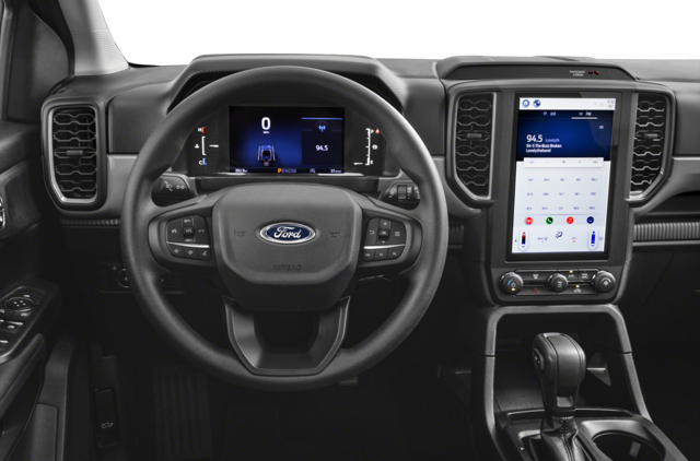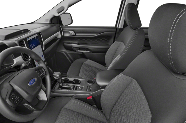 The 2025 Ford Ranger offers a comfortable and tech-savvy environment accommodating up to five passengers. The 8-inch touchscreen with the SYNC 4 infotainment system provides seamless connectivity, while the 12.4-inch digital instrument cluster on the LARIAT trim offers a modern touch. Apple CarPlay and Android Auto compatibility ensure that you stay connected on the go. For an enhanced audio experience, the Bang & Olufsen sound system delivers premium sound quality. Comfort features, such as leather-trimmed seats, heated front seats, and a heated steering wheel, add a touch of luxury. Dual-zone automatic climate control, available on the LARIAT trim, ensures personalized comfort for all passengers. Additional features, such as a 360-degree camera with a split-view display and wireless charging pad, enhance convenience and functionality.