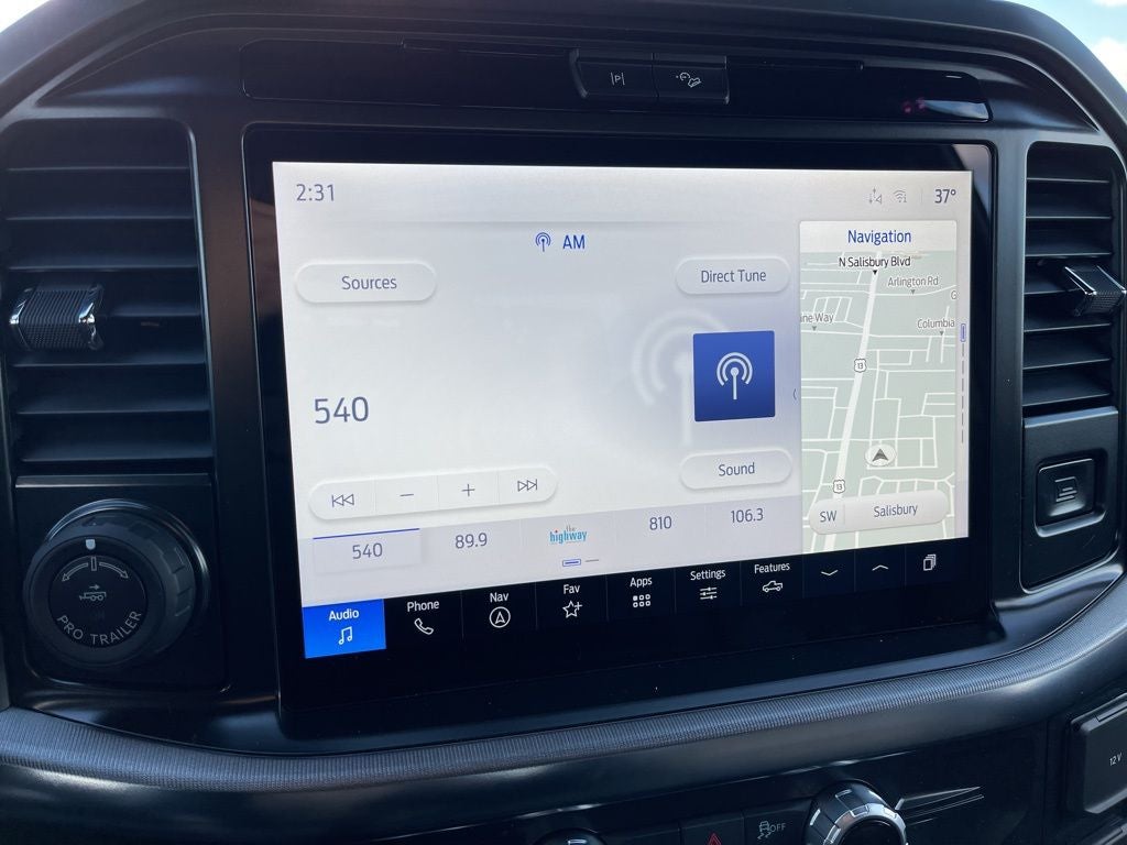 Equipment Group 501A Mid (6 Angular Bright Anodized Step Bar, Illuminated Driver & Passenger Visors, Power-Sliding Rear Window, and Wheels: 20 Chrome-Like PVD), FX4 Off-Road Package (4x4 FX4 Off-Road Bodyside Decal, Hill Descent Control, Monotube Rear Shocks, Off-Road Tuned Front Shock Absorbers, Rock Crawl Mode, and Tray Style Floor Liner w/o Carpet Mats), Mobile Office Package (Console Worksurface, Partitioned Lockable Rear Storage, and Wireless Charging), 4WD, 4-Wheel Disc Brakes, 8 Speakers, ABS brakes, ActiveX Trimmed Bucket Seats, Adjustable pedals, Air Conditioning, Alloy wheels, AM/FM radio: SiriusXM with 360L, Auto High-beam Headlights, Auto-dimming door mirrors, Auto-dimming Rear-View mirror, Automatic temperature control, Brake assist, Bumpers: chrome, Chrome wheels, Compass, Delay-off headlights, Driver door bin, Driver vanity mirror, Dual front impact airbags, Dual front side impact airbags, Electronic Stability Control, Emergency communication system: SYNC 4 911 Assist, Front anti-roll bar, Front Bucket Seats, Front Center Armrest, Front dual zone A/C, Front fog lights, Front License Plate Bracket, Front reading lights, Front wheel independent suspension, Fully automatic headlights, Garage door transmitter, Heated door mirrors, Heated front seats, Heated steering wheel, Illuminated entry, Internet access capable: FordPass Connect 5G, Low tire pressure warning, Memory seat, Navigation system: Connected Navigation, Occupant sensing airbag, Outside temperature display, Overhead airbag, Overhead console, Panic alarm, Passenger door bin, Passenger vanity mirror, Pedal memory, Power door mirrors, Power driver seat, Power passenger seat, Power steering, Power windows, Radio data system, Radio: B&O Sound System by Bang & Olufsen, Rain sensing wipers, Rear reading lights, Rear seat center armrest, Rear step bumper, Rear window defroster, Remote keyless entry, Security system, Speed control, Split folding rear seat, Steering wheel mounted audio controls, SYNC 4 w/Enhanced Voice Recognition, Tachometer, Telescoping steering wheel, Tilt steering wheel, Traction control, Trip computer, Turn signal indicator mirrors, Variably intermittent wipers, Ventilated front seats, Voltmeter, and Wheels: 18 Chrome-Like PVD.