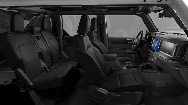 Equipment Group 314A Lux Package (18 Bright Machined Aluminum Wheels, 3.73 Axle Ratio, 360-Degree Camera, Adaptive Cruise Control, Evasive Steering Assist, Front Parking Sensors, Heated Leather-Trimmed/Vinyl Bucket Seats, Information on Demand Panel, and Sideview Mirrors), Ford Connectivity Package (1-Year Included), 4-Wheel Disc Brakes, 7 Speakers, ABS brakes, Air Conditioning, Alloy wheels, AM/FM radio: SiriusXM with 360L, AM/FM Stereo, Auto High-beam Headlights, Auto-dimming Rear-View mirror, Automatic temperature control, Brake assist, Carbonized Gray Molded-in-Color Hard Top, Compass, Connected Navigation, Delay-off headlights, Driver door bin, Driver vanity mirror, Dual front impact airbags, Dual front side impact airbags, Electronic Stability Control, Emergency communication system: 911 Assist, Exterior Parking Camera Rear, Front anti-roll bar, Front Bucket Seats, Front Center Armrest, Front dual zone A/C, Front fog lights, Front License Plate Bracket, Front reading lights, Front wheel independent suspension, Fully automatic headlights, Hard Top Sound Deadening Headliner, Heated door mirrors, Heated front seats, Heated steering wheel, Illuminated entry, Integrated roll-over protection, Leather Shift Knob, Low tire pressure warning, Navigation system: Connected Navigation, Occupant sensing airbag, Outside temperature display, Overhead airbag, Overhead console, Panic alarm, Passenger door bin, Passenger vanity mirror, Power door mirrors, Power driver seat, Power passenger seat, Power steering, Power windows, Radio data system, Rear seat center armrest, Rear-Window Defroster and Washer, Remote keyless entry, Security system, SiriusXM with 360L, Speed control, Split folding rear seat, Steering wheel mounted audio controls, SYNC 4, Tachometer, Telescoping steering wheel, Tilt steering wheel, Traction control, Trip computer, Variably intermittent wipers, and Voltmeter.