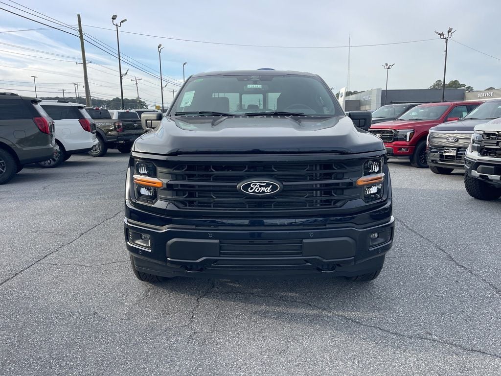 Equipment Group 302A Mid (18 Painted Aluminum Wheels, 360 Degree Camera, 400W Pro Power Onboard (cab & Bed), Adaptive Cruise Control with Stop and Go, AEB Oncoming, Auto-Dimming Rear-View Mirror, Body-Color Door Handles, Chrome Front and Rear Bumpers, Cloth 40/20/40 Front Seat, Dual-Zone Electronic Automatic Temperature Control, Ford Co-Pilot360 Assist 2.0, Front Parking Sensors, Heated Front Seats, Intelligent Access with Push Button Start, Power Glass Heated Sideview Mirrors, Power-Sliding Rear Window, Radio: AM/FM Stereo with SiriusXM 360L, Remote Start System with Remote Tailgate Release, SYNC 4 with Enhanced Voice Recognition, Towing Technology, and Wrapped Steering Wheel), Ford Connectivity Package (1-Year Included), Internet access capable: 5G Modem - Ford Connectivity Package, XLT Black Appearance Package Plus (6 Black Running Boards, Black Exterior Badging, Black Grille, Body-Color Front and Rear Bumpers, Dark Interior Appliques, Dual Exhaust with Black Tips, Floor Shifter, Gray Box Side Decal, and Wheels: 20 Gloss Black Painted Aluminum), 4WD, 4-Wheel Disc Brakes, 6 Speakers, ABS brakes, Air Conditioning, Alloy wheels, AM/FM radio: SiriusXM with 360L, Auto High-beam Headlights, Brake assist, Bumpers: body-color, Compass, Delay-off headlights, Driver door bin, Driver vanity mirror, Dual front impact airbags, Dual front side impact airbags, Electronic Stability Control, Emergency communication system: SYNC 4 911 Assist, Front anti-roll bar, Front Center Armrest, Front fog lights, Front License Plate Bracket, Front reading lights, Front wheel independent suspension, Fully automatic headlights, Heated door mirrors, Illuminated entry, Low tire pressure warning, Occupant sensing airbag, Outside temperature display, Overhead airbag, Overhead console, Panic alarm, Passenger door bin, Passenger vanity mirror, Power door mirrors, Power steering, Power windows, Radio data system, Rear Parking Sensors, Rear reading lights, Rear step bumper, Rear window defroster, Remote keyless entry, Security system, Speed control, Split folding rear seat, Steering wheel mounted audio controls, Tachometer, Telescoping steering wheel, Tilt steering wheel, Traction control, Trip computer, Unique Sport Cloth 40/Console/40 Front-Seats, and Variably intermittent wipers.