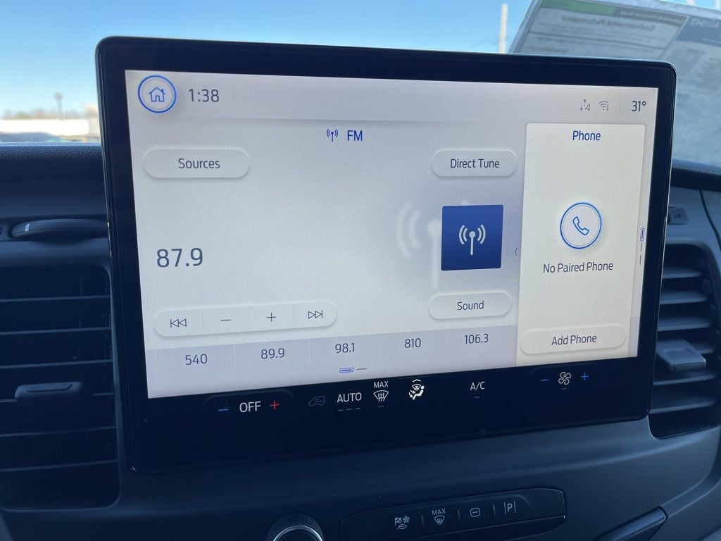 Ford Connectivity Package (1-Year Included), Heavy-Duty Trailer Tow Package (Frame Mounted Hitch Receiver and Tow/Haul Mode with Trailering Wiring Provisions), Load Area Protection Package (Front and Rear Vinyl Floor Covering), Order Code 101A (4.10 Limited-Slip Axle Ratio, AM/FM Stereo, Dark Palazzo Gray Vinyl Bucket Seats, SYNC 4, Vinyl Front Bucket Seats, and Wheels: 16 Silver Steel with Black Hubcap), 2 Additional Keys (4 Total), 4 Speakers, 4-Wheel Disc Brakes, 6 Cargo Tie-Down Hooks, ABS brakes, Air Conditioning, AM/FM radio, Apple CarPlay/Android Auto, Auto High-beam Headlights, Brake assist, Delay-off headlights, Driver door bin, Driver's Seat Mounted Armrest, Dual front impact airbags, Dual front side impact airbags, Electronic Stability Control, Emergency communication system: 911 Assist, Exterior Parking Camera Rear, Front anti-roll bar, Front Bucket Seats, Front License Plate Bracket, Front Overhead Shelf, Front reading lights, Front wheel independent suspension, Fully automatic headlights, Illuminated entry, Large Center Console, Low tire pressure warning, Midship Extended Range Fuel Tank (31 Gallons), Navigation system: Connected Navigation, Occupant sensing airbag, Overhead airbag, Panic alarm, Passenger cancellable airbag, Passenger door bin, Power door mirrors, Power steering, Power windows, Rain sensing wipers, Remote keyless entry, Speed control, Steering wheel mounted audio controls, Tachometer, Telescoping steering wheel, Tilt steering wheel, Traction control, Trailer Brake Controller, and Variably intermittent wipers.