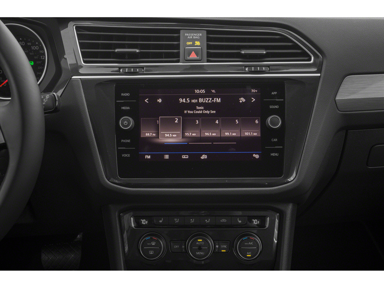 - Radio: Composition Media AM/FM/HD -inc: 8" touchscreen, dual USB input, voice control, 6-speaker sound system, VW App-Connect smartphone integration and interface w/Apple CarPlay, Android Auto and MirrorLink, capability for in-vehicle 4G LTE enabled Wi-Fi (cellular data plan required; includes limited trial), capability for VW Car-Net services (capabilities for certain services vary; requires enrollment or subscription), Bluetooth® connectivity (for compatible devices), SiriusXM satellite radio w/limited-time trial subscription and USB charging-only port facing 2nd row seat